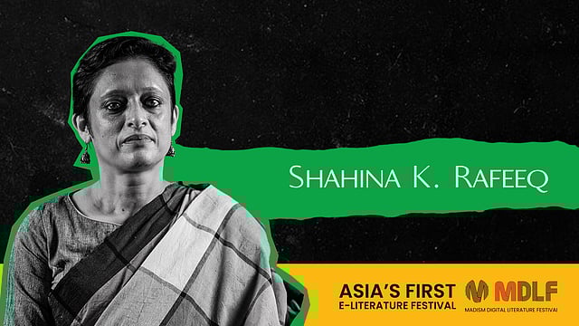 Shahina K. Rafeeq is a noted Malayalam short story writer and film critic from Valluvambram, Malappuram district, Kerala. She holds a PG Diploma in Journalism, a postgraduate degree in English Literature, and a PhD for her research on the films of Mani Ratnam. Her major short story collections include Ek Paalttu Jaanvar, Ladies Coupé Athava Theendari Vandi, and Penchillakal. Other works include the essay collection Surreal Tonguees and the edited book Ulkadalinte Aazhakkazhchakal: K.G. Georgeinte Chalachithra Jeevitham. She has received the Kamala Surayya Award and had her short story and poem selected in the British Council’s international competition in 2012 and 2015.