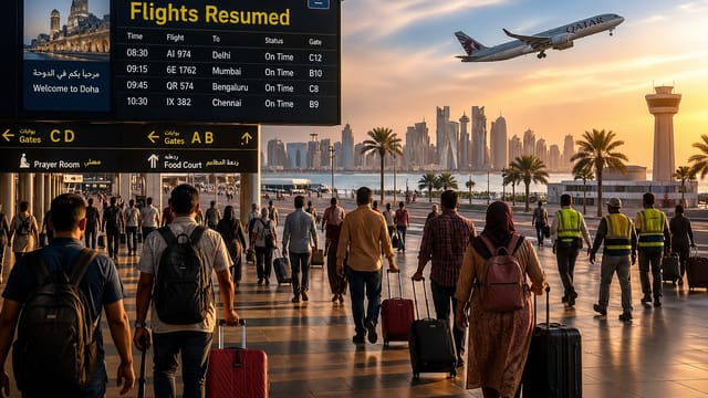 English Summary: Qatar is showing clear signs of recovery after recent geopolitical tensions in West Asia, with flight services between India and Doha set to resume from May 1. Major airlines are restarting operations, bringing relief to Indian expatriates, workers, and tourists. The move is expected to revive travel, boost tourism, and support key sectors like construction, healthcare, IT, and hospitality in Qatar